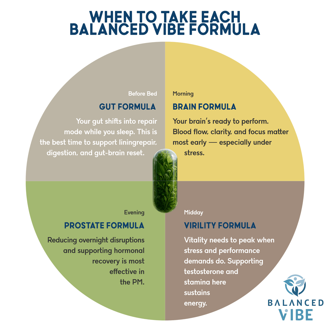 Brain, gut, drive, and recovery aren’t separate silos. They’re a connected network. Balanced Vibe gives you targeted support where your body needs it, when it needs it — with clean, plant-based formulas that work better together.*
